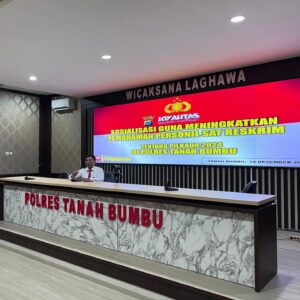 Kalselupdate.my.id, Batulicin – Satuan Reserse Kriminal (Satreskrim) Polres Tanah Bumbu melaksanakan kegiatan sosialisasi untuk meningkatkan pemahaman personel mengenai pelaksanaan Pemilihan Kepala Daerah (Pemilukada) Serentak 2024 Rabu ( 18/12/24 ). Acara ini berlangsung di Aula Wicaksana Laghawa, Polres Tanah Bumbu.